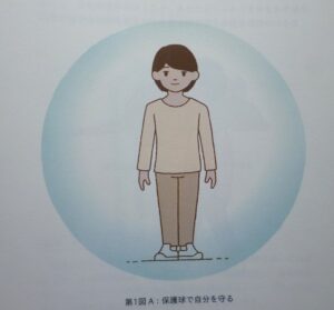 基本となるのは上記イラストにもある「保護球で自分を守る」イメージの練習です。